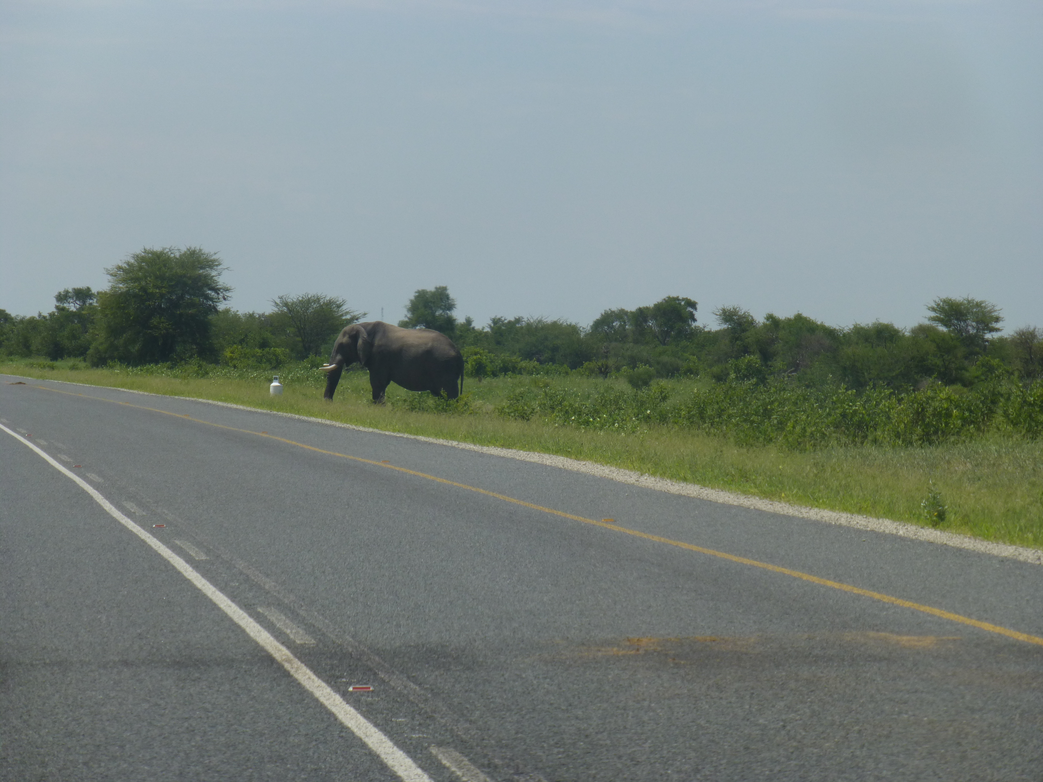 e grazing goats and cattle was replaced by our first sighting of the biggest of the Big Five. Standing by the side of the road, about to cross, was an impressive bull elephant. As we slowed to pass, it gave a show of strength, fanning its enormous ears and pointing its broad head and magnificent ivory tusks in our direction, before turning and heading back into the dense vegetation of the bush. Soon, there was another, and another. We were deep in elephant country. Being accustomed to foxes, badgers and the occasional deer on the roads of rural Gloucestershire, encountering these African behemoths crossing our path was an outlandish experience.